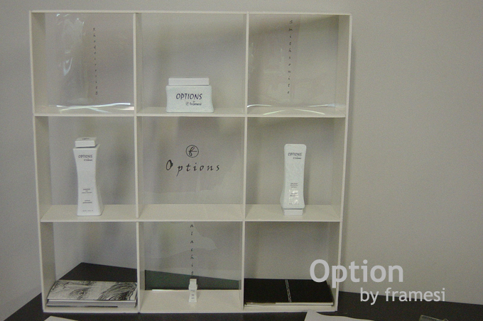 In occasione del workshop del terzo anno, la nostra classe ha lavorato in collaborazione con Framesi, nota azienda di prodotti per capelli. Il concept di partenza era abbastanza limitante: il restyling delle confezioni per la linea Option della Framesi avrebbe dovuto essere composto da confezioni bianche pensate nei formati standard di prodotti per capelli.